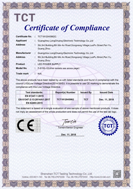 廣州龍創(chuàng)電子科技有限公司 成立于2009年專業(yè)從事LED AC-DC開關(guān)電源及驅(qū)動電源的開發(fā)、生產(chǎn)及銷售。公司座落于廣州番禺,交通便捷。廠區(qū)面積4000平方米;年產(chǎn)能100多萬臺。產(chǎn)品已獲得CCC 、CE&RoHS等證書,遍布國內(nèi)外市場,遠(yuǎn)銷全球,如歐美、南美、中東、東南亞及港臺等60個國家和地區(qū),在行業(yè)內(nèi)享有一定的知名度。